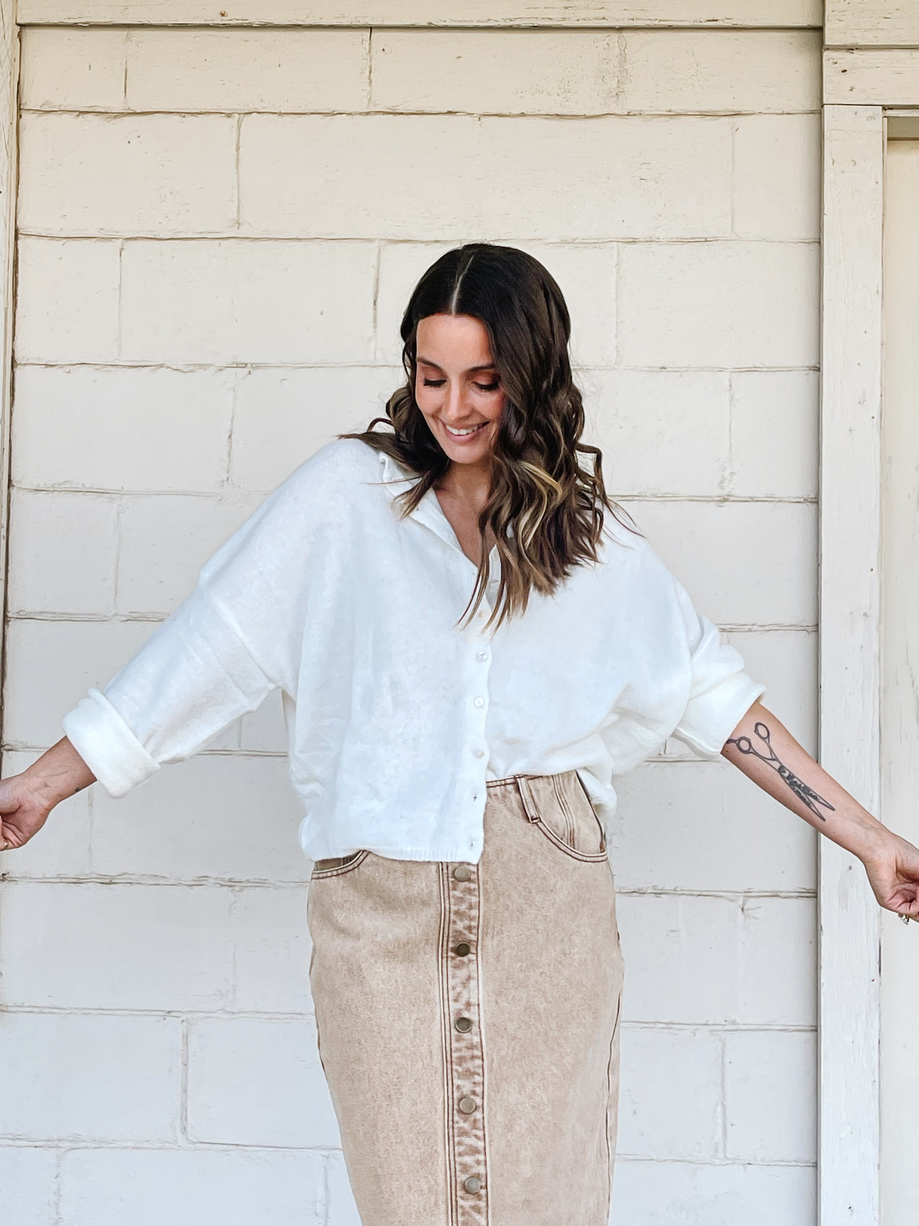 We are here to help each of you feel confident and beautiful! Grab that blouse you would never wear, mix it with trendy denim, and a classic cardigan. Shopping at Palm Social is like shopping with your girlfriends!