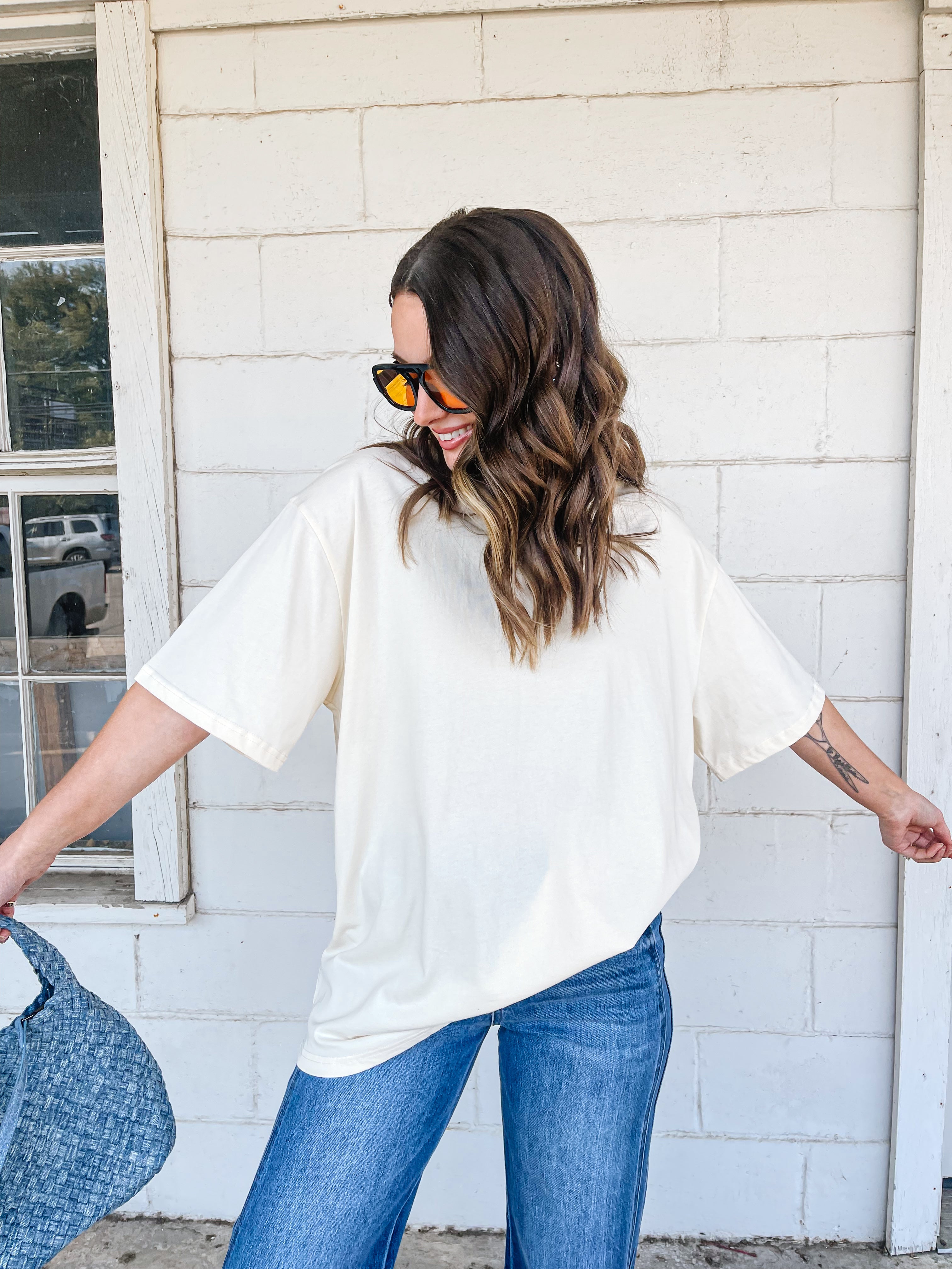 • oversized tee, model is wearing a small